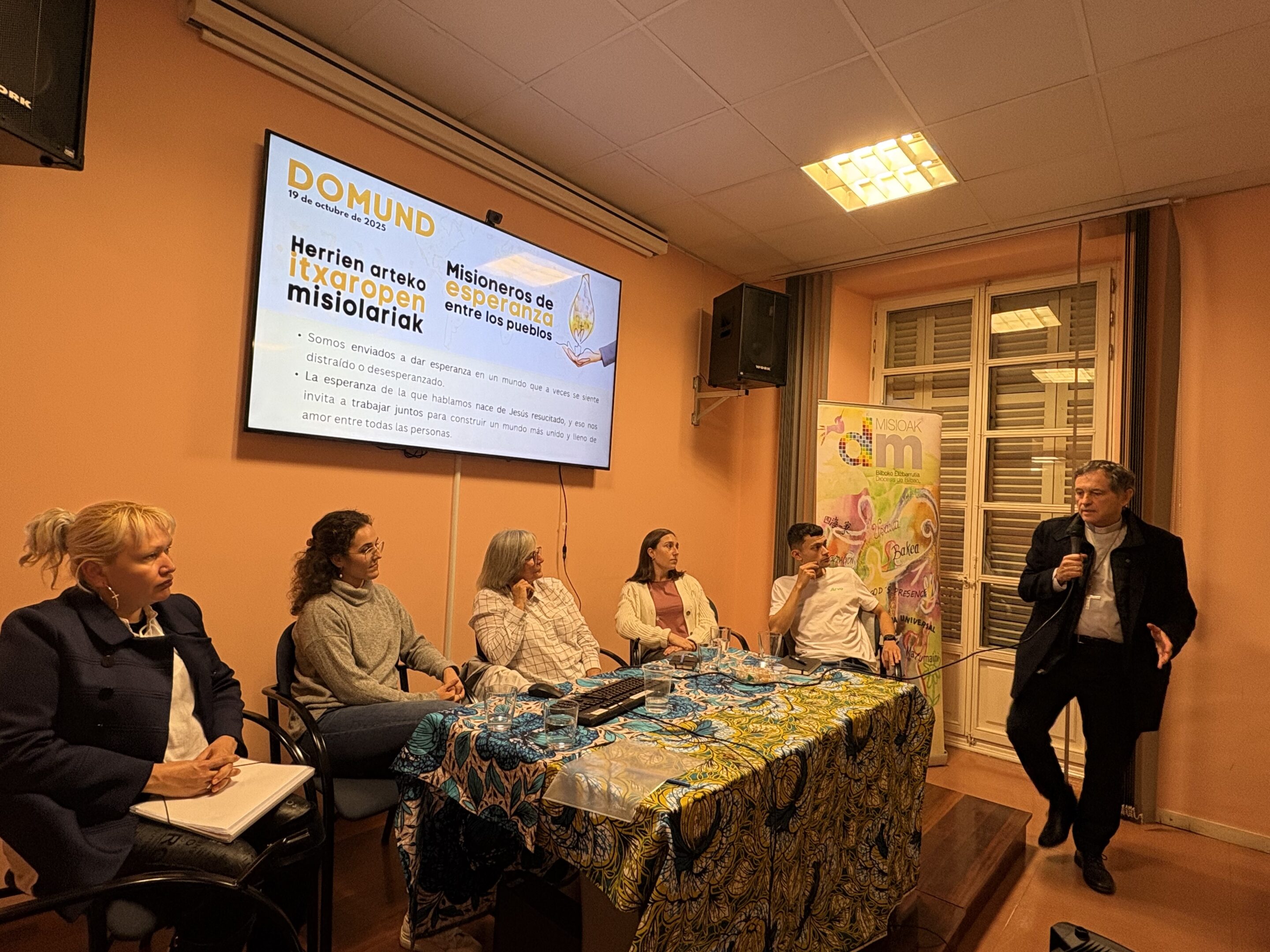 Bere aldetik, On Joseba Segura gotzainak azaldu dauanez, “5.500 misiolari baino gehiagok munduan bide egiten dihardue maitasunaren itxaropena eta Jainkoaren salbazinoa Barri Onaren kontsolamenduaren eta argiaren preminan dagozanei eroateko. Kristo bizidunak gure bizitzak eta alkarteak aldatzeko dauan indarraren ageriko zeinu da euren emote eskuzabala. Otoitza, babes-keinua, dirua…, laguntza guztiak kontuan hartzekoak dirala pentsatzen dogunon ustea barritzeko aukera aparta da DOMUND eguna misinoa bihotzean daroagunontzat. Izan be laguntasun hori, txikia izanda be, benetako pizgarri da Eleizaren egiteko ebanjelizatzailerako lekurik pobreenetan”