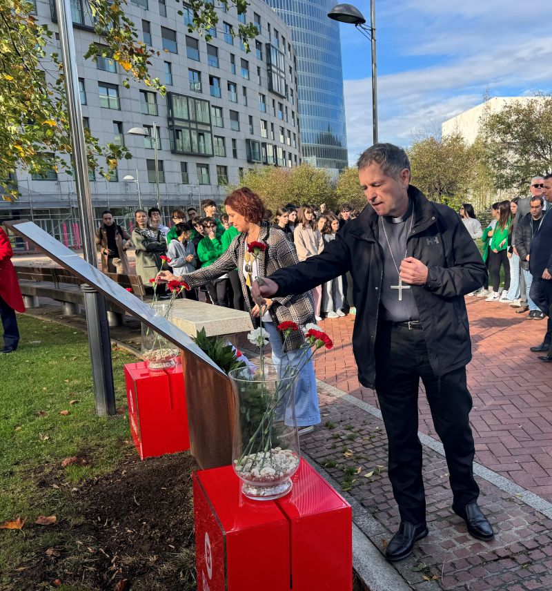 El acto homenaje en honor de las víctimas ha tenido lugar, por primera vez, en el conjunto escultórico ATALASE. Se trata de un lugar abierto, presidido por la instalación artística realizada por José Ramón Anda, ubicado entre el Museo Guggenheim y la Plaza Euskadi..