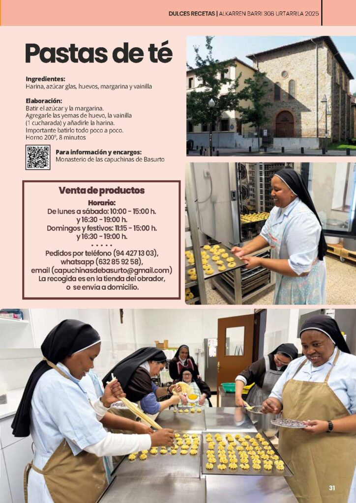 Con motivo de esta distinción, y como ejemplo de su labor, recuperamos la receta de sus clásicas Pastas de Té, publicada en su día por la revista diocesana. Una delicia sencilla que resume la esencia de su obrador: