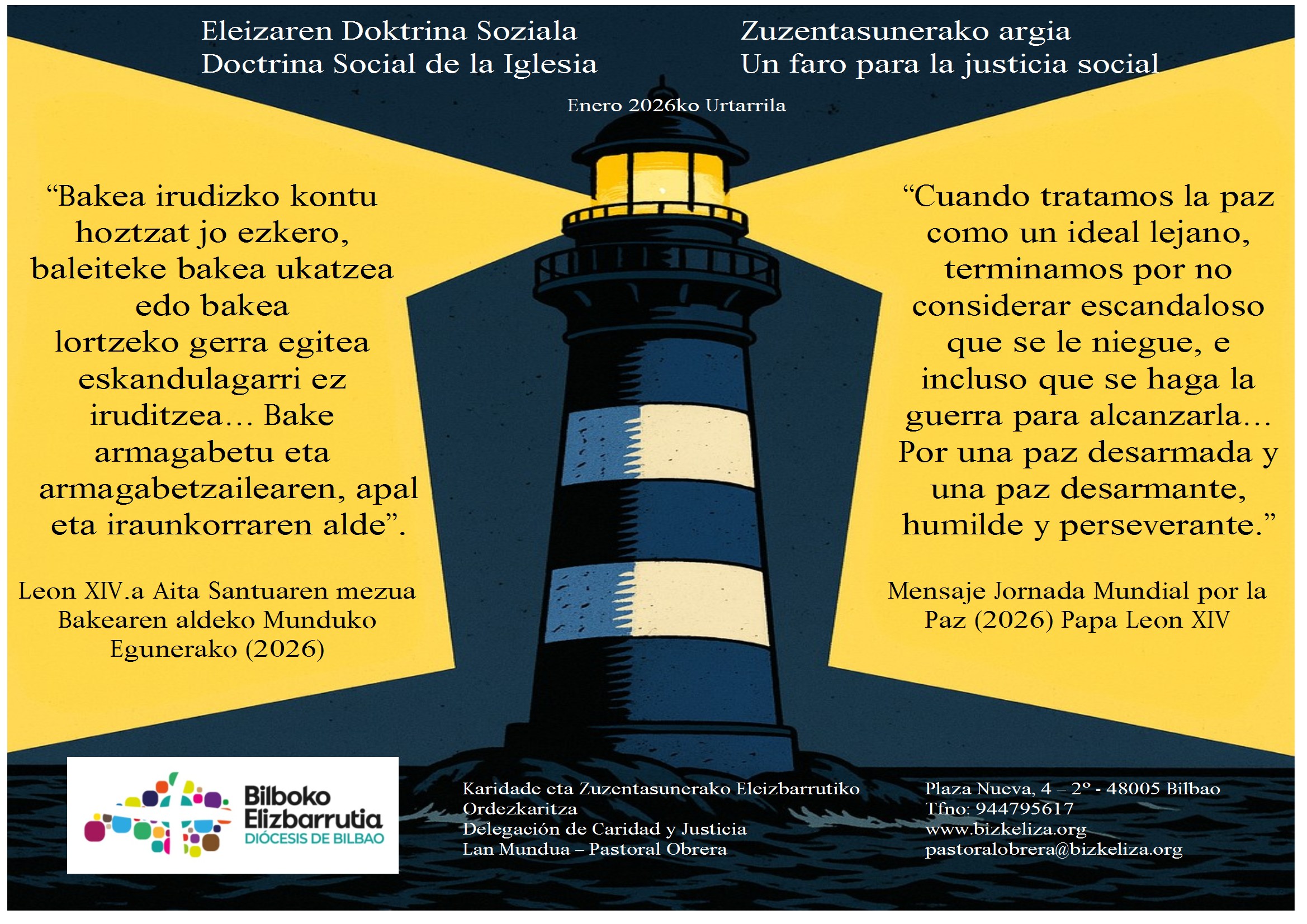 En esta ocasión, la frase del Faro pertenece al Mensaje para la Jornada Mundial por la Paz (2026) del Papa León XIV.