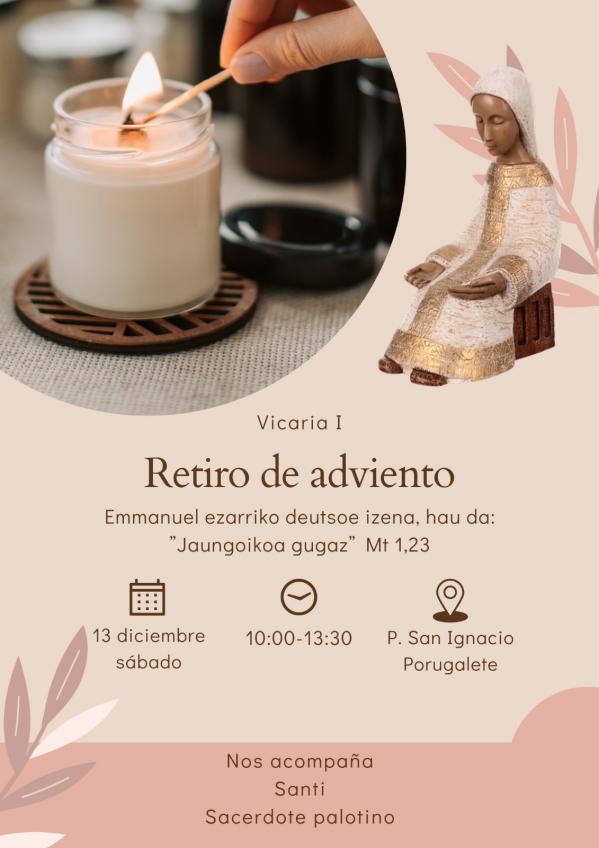 La parroquia de San Ignacio de Portugalete, acogerá mañana sábado, 13 de diciembre, de 10:00 a 13:30 h., un retiro de Adviento dirigido a todas las personas de la vicaría I que quieran participar. El encuentro estará acompañado por el sacerdote palotino Santi Juárez, de la Unidad Pastoral (UP) Santurtzi.
